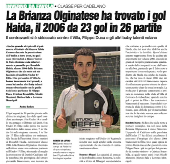 CLICCA SULLA PAGINA DEL GIORNALE PER L'APPROFONDIMENTO SU BOUABIB HAIDA, PRESENTE NELLA PAGINA DELL'UNDER 17 ÉLITE SULL'EDIZIONE IN EDICOLA DA LUNEDì 7 MARZO