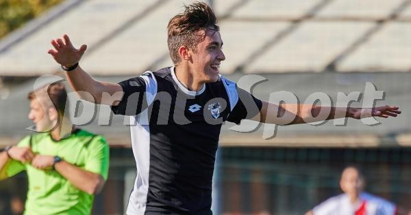 Tommaso Luparelli festeggia con i compagni la rete [Foto Cunazza]