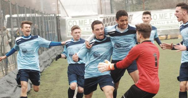 L'esultanza di Bechis e compagni al gol che vale i tre punti al Chieri (Allievi Regionali) con il Bacigalupo