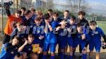 Il capitano del Candiolo Under 17 Andrea Zuiani, dietro il portiere Danilo Ceppa