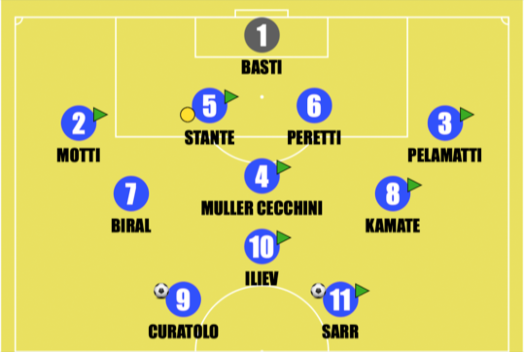 Kamate 7.5 Spesso pasticcione palla al piede, dimostra tutto il suo tempismo e la sua abilità nel leggere le situazioni quando offre due cioccolatini a Curatolo. Entrambi di mancino, entrambi in profondità: due assist perfetti che lo rendono uno dei migliori in campo. Non diminuisce il ritmo nella ripresa, fin quando all’11’ Zanchetta non decide di sostituirlo. Andrà a letto dopo aver messo lo zampino in due gol: meglio di così?