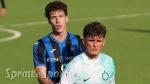Troppa differenza di ritmo, tecnica e idee tra le due squadre nei 90 minuti migliori e peggiori della stagione, a seconda del punto di vista da cui la si guardi. L'Inter la partita l'ha vinta a centrocampo con la sua mediana assortita al meglio: la fisicità e l'intelligenza di Bovo, la fantasia di Berenbruch, la tecnica di Quieto sono solo la punta dell'iceberg di una squadra che gira a duecento all'ora rispetto a un Milan disegnato con il 4-2-3-1 ma mai in grado di farsi vedere seriamente dalle parti di Tommasi. Troppa Inter in tutti i reparti, con Aidoo che a destra fa impazzire sia Sala che Ghibaudo e con Tamiozzo che da solo impegna Ferroni ed Heffernan liberando gli spazi alle sgroppate di Zefi. I primi due squilli del match dicono già molto di ciò che sarà la partita: Bartoccioni d'istinto dice no a Zefi liberato da Aidoo (4'), poi Berenbruch allarga troppo il mancino al volo su siggerimento - in scavetto - del fantasista irlandese (11'). Doppio indizio che porta al gol del vantaggio: Aidoo brucia Sala e mette in mezzo, la difesa libera l'area ma al limite c'è Bovo che stoppa di petto e infila l'angolino con un destro al volo (13'). Il Milan non tiene il campo, fatica in mezzo con Chiesurin abbandonato un po' a sé stesso e nemmeno il passaggio al 4-4-2 (Tavernaro a destra e Siman avanzato al fianco di Lanotte) ridà un minimo di solidità alla squadra di Terni. Che sul finire di tempo capitola sotto i colpi di Quieto, che prima sfonda a destra e batte Bartoccioni sfruttando un gran filtrante di Berenbruch (35'), poi si fa trovare pronto al centro dell'area di rigore sull'assist sempre di Berenbruch firmando il 3-0 prima dell'intervallo.