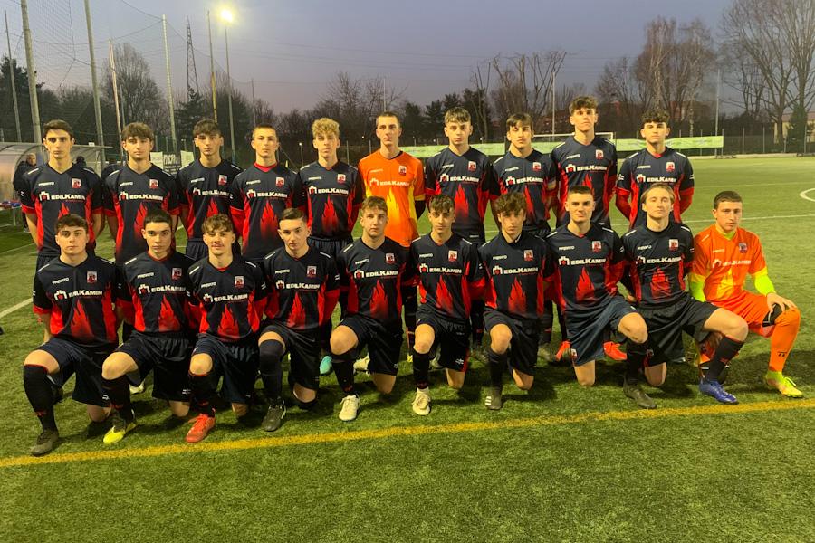 Serra dal dischetto La posta in palio è molto alta, l'incontro è fin da subito vibrante ed entrambe le squadre vogliono dimostrare il loro grande valore. Ci sono tanti duelli fisici, contrasti e si gioca con grande agonismo e intensità. La partita è maschia e tutti i ragazzi interpretano la sfida con grande piglio e determinazione. Il primo acuto è di marca rossoblù con un tiro di Castelli respinto da Balistreri in calcio d'angolo. Il Mazzo risponde con Borghi che, dopo una serpentina, impegna Caravaggio che para di piedi. I locali ci provano anche con una punizione di Ruffolo che termina alta e con un colpo di testa di Caruso sugli sviluppi di calcio d'angolo. Entrambe le compagini mettono in atto un pressing efficace, c'è poco tempo per pensare e bisogna avere la capacità di scaricare il pallone con con i tempi giusti e non tenerlo per troppi secondi per non rischiare di perderlo. Si gioca in spazi stretti e c'è densità in molte zone di campo. La partita si sblocca su calcio di rigore. Borsani con un bel guizzo anticipa Brunello che lo atterra. Al 31' dal dischetto si presenta Serra e il classe 2005 segna calciando alla sinistra di Balistreri. I ragazzi di Bilotti concludono bene la prima frazione di gioco e si fanno vedere con una punizione del neo entrato Di Nicolo e sul successivo calcio d'angolo con un tiro alto dello stesso numero 20.
