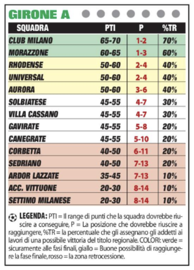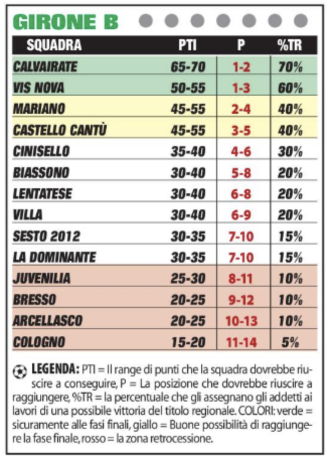 Dopo le prime due giornate di Coppa Lombardia è tempo di analizzare i gironi in vista dell'inizio del campionato. Alcune quotazioni sono confermate rispetto a quest'estate, altre in lieve crescita o discesa. Ecco nel dettaglio i nostri pronostici.